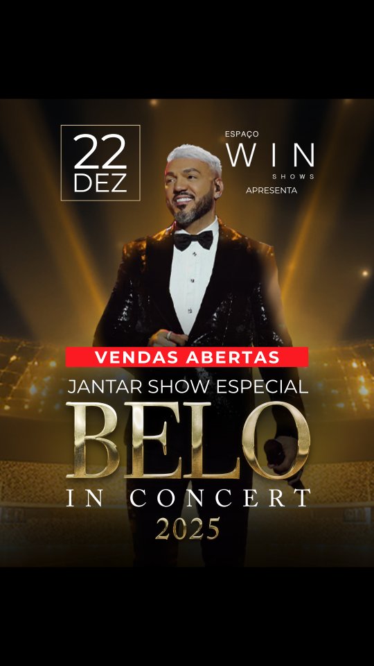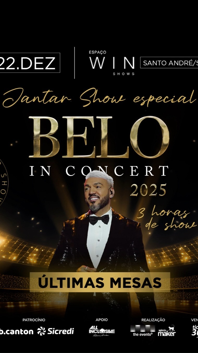 “Não perca essa experiência inesquecível com 3 horas de show do Belo 🌟 Uma noite de puro romantismo, onde grandes clássicos se encontram com o melhor da alta gastronomia!”